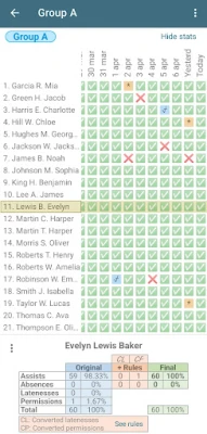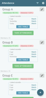 Use this application to keep track of attendance records of one or several groups of people on certain dates.