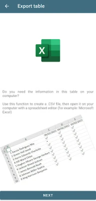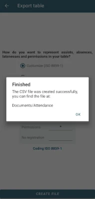 - Attendance record - Make your attendances records quickly and safely - 4 attendance states: assistance, absence, latenesses and permission - Automatic calculation of final percentages of assists and absences - Create attendance reports to view attendance records by periods - Visualize the information in a table - Export your tables to view them on your computer (CSV file)