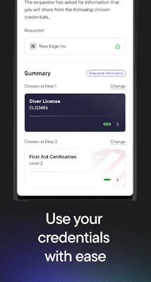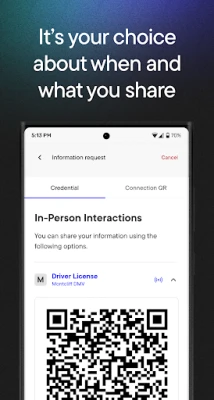 - Scan, tap, or click to present credentials: Quickly share credentials with a QR code or deeplink, simplifying the verification process.