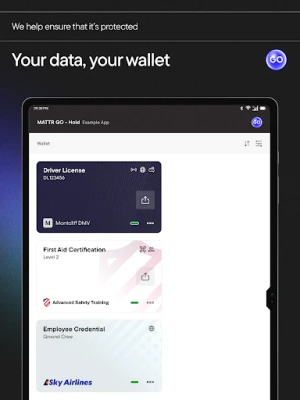 MATTR Go Hold is a versatile tool designed to work with the MATTR VII platform and other digital trust service providers. It enables users to securely collect, store, and present verifiable digital credentials. Built using the MATTR Pi Wallet Toolkit, this app showcases all of the capabilities offered by MATTR’s digital wallet infrastructure, providing users with a practical demonstration of how digital credentials can be managed and shared.