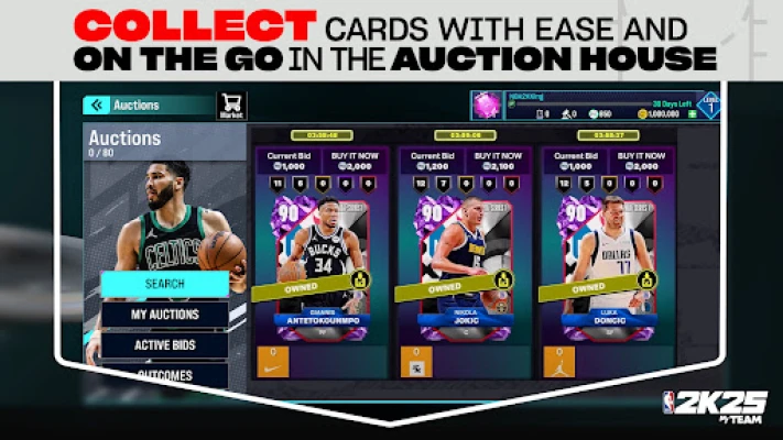 The Auction House gives you access to buy and sell players on the go! Browse the marketplace for that coveted NBA legend to complete your basketball dream team or place players up for auction to dominate the court. The Auction House ensures collecting and managing your roster is fast and seamless.