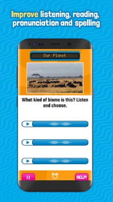 • Interactive quiz game that tests your skills using text, images, audio and speech