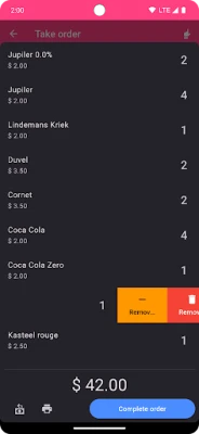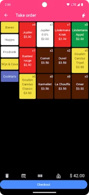 For a complete overview of the order, simply click on the "Checkout" button. This will show a list of all the ordered products, sorted by category. Once the order is completed, you can print a receipt and then click on "Complete order". This will save the order into the "Order history", where it will always be available.