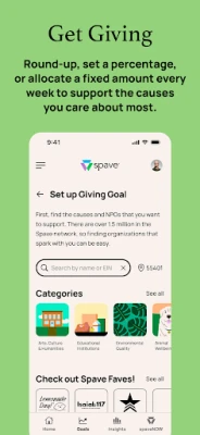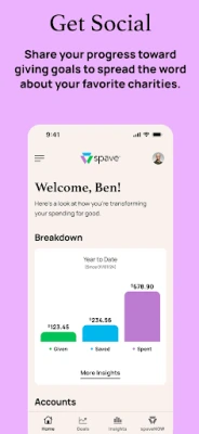 Spave is a social giving app that helps you start giving to charity, give more, or give more easily by donating a portion of your spending to your favorite charities. You can round up every purchase (like at the grocery store!), set a percentage of your spending (like a tip!), or donate a fixed amount.