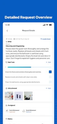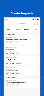 • Request Management: Send food, laundry, and other requests with just a tap.