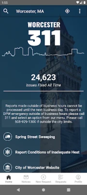Welcome to the Worcester 311 App! Worcester, Massachusetts, known best as the “Heart of the Commonwealth,” introduces its free, easy to use app for residents, businesses and visitors. The Worcester 311 App is a quick and easy way to submit non-emergency requests for assistance with issues you see around the City. See a broken street sign? Snap a picture to submit with the location, and let us fix the problem! Spot a street light pole that’s in need of repair? Don’t wait until you get home to let us know – use the handy Worcester 311 mobile app to report the issue and add your own comments. All reports are routed through the Worcester 311 customer service center and assigned to the appropriate city department to be addressed in a timely manner. Accessing your City’s services has never been easier thanks to the Worcester 311 app.